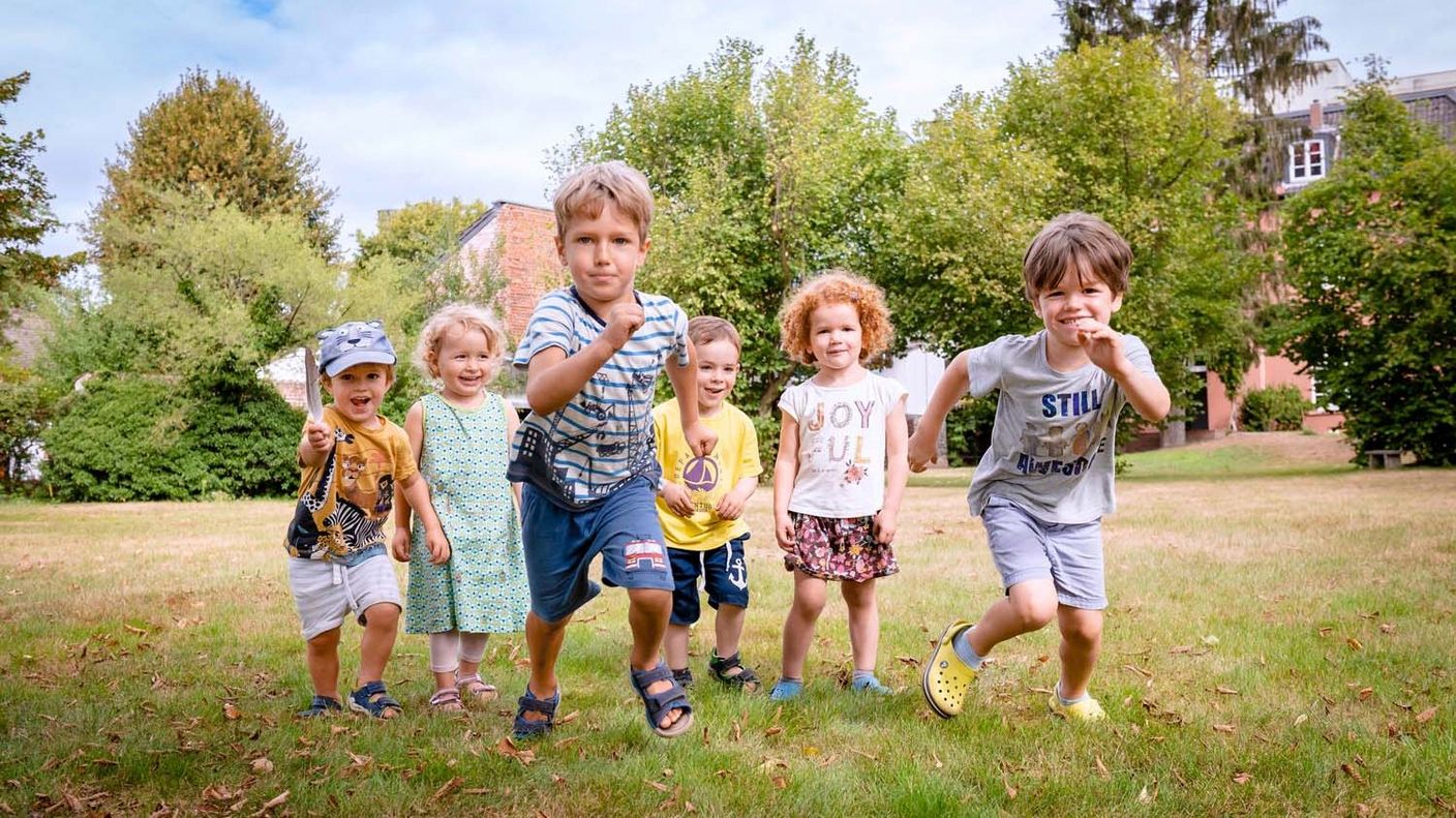 Zwölf Mal habe der Fotograf sie über die Wiese rennen lassen, erzählt Nico. Ganz so oft war es wohl nicht, aber Spaß hat es gemacht und das Ergebnis lässt sich sehen: Kita-Kinder der „Kinderarche Friedrichskothen“ in Ratingen-Lintorf zieren die Fahrerseite des Jubiläumsmobil zum 200. Geburtstag der Graf Recke Stiftung. Sie sind damit die Jüngsten, die das Jubiläumsmotto „Mit dem Herzen dabei“ nach außen tragen. Dass Jung und Alt gut zusammengehen, zeigt sich auch am Kindergarten selbst: Die Kleinen toben in wahrlich historischem Gemäuer, betreut von einem außergewöhnlichen Team.
